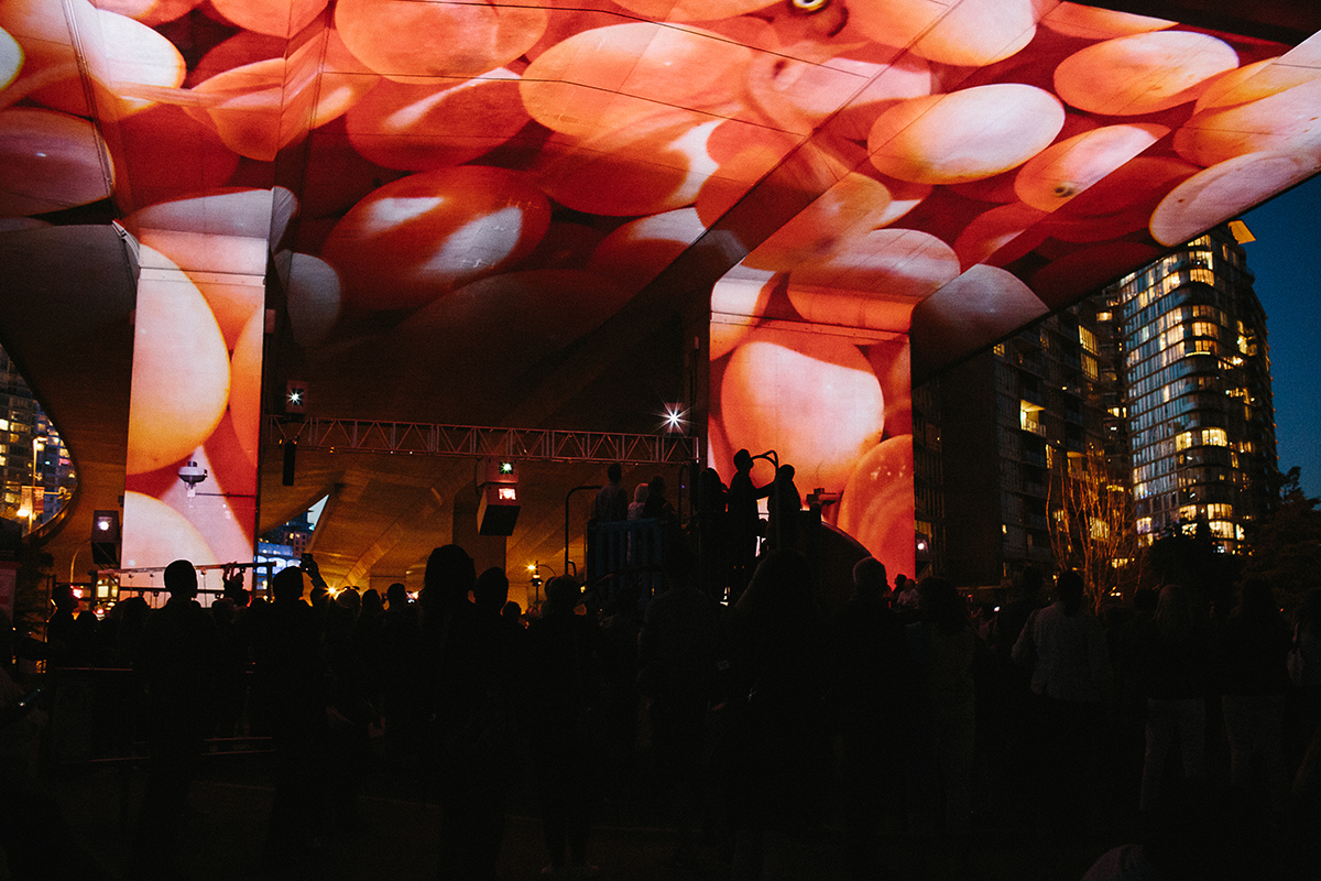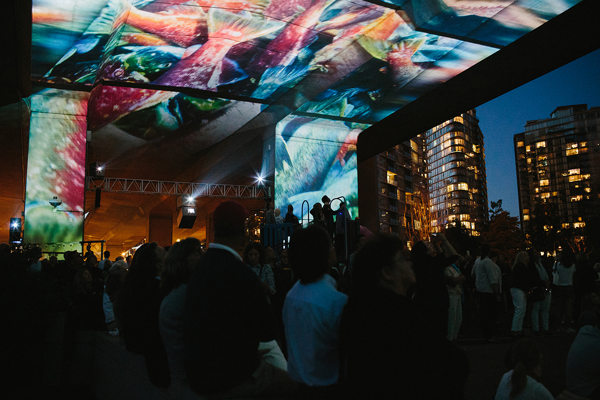 It was a perfect summer evening. Dusk fell as a crowd of close to 500 people gathered under the Cambie Bridge. After years of planning, development, and production UNINTERRUPTED’s cinematic salmon were about to make their way across the bridge and into the heart of the city.