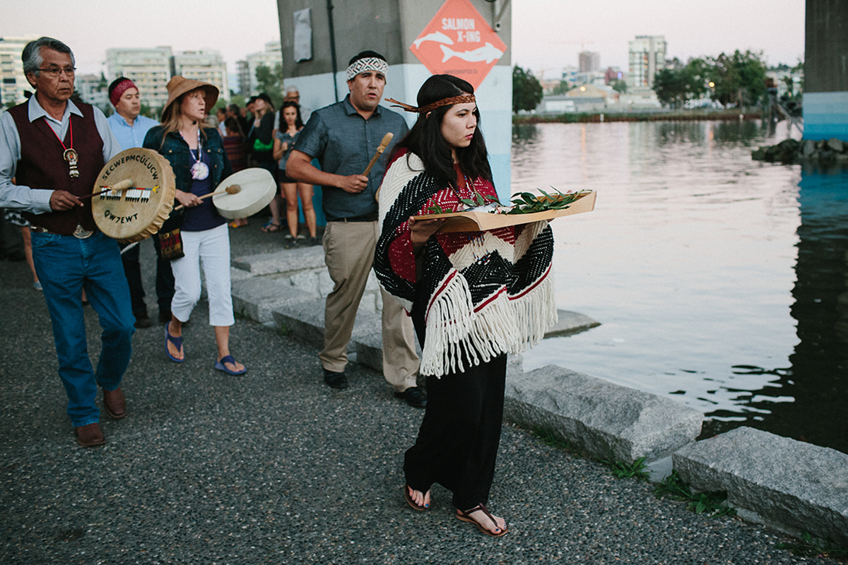 The voices and drums of representatives from the Musqueam, Squamish and Tsleil-Waututh Nations filled the air as they welcomed the audience onto their traditional territories. They also welcomed visiting Chief Oliver Arnouse and members of the Little Shuswap Lake Indian Band from the Secwepemc Nation. The Adams River flows through their traditional territory in the interior of BC, site of much of the filming for UNINTERRUPTED.